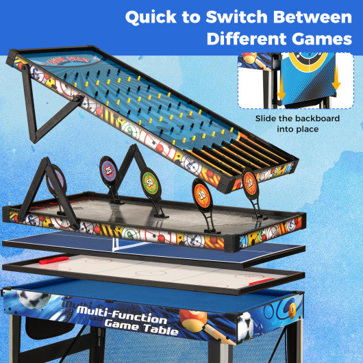 10-in-1 Combo Game Table Set with Table Tennis Basketball Soccer-Blue