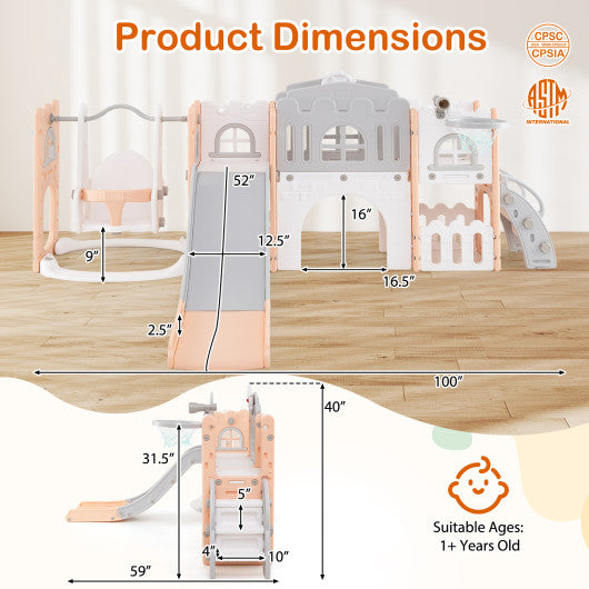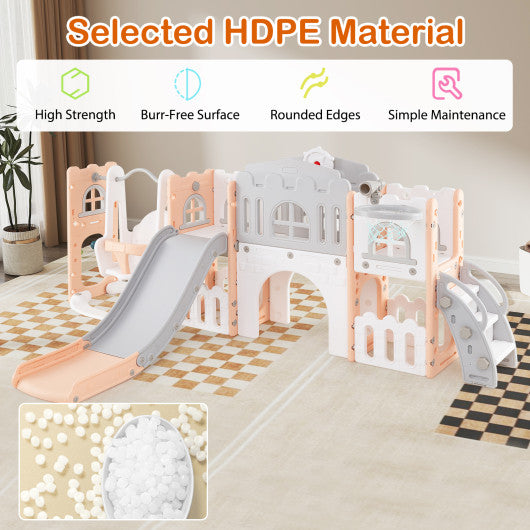 10-in-1 Toddler Swing and Slide Set Climber Playset with Basketball Hoop-Pink