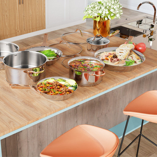 11 Pieces Stainless Steel Kitchen Cookware Set with Gold Stay-Cool Handles