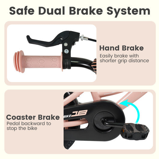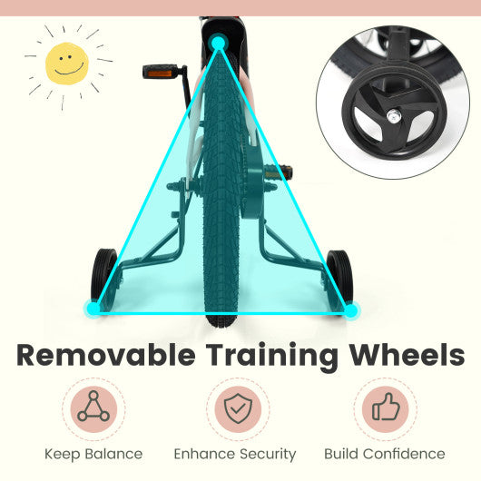 12/14/16/18 Inch Kids Bike Adjustable with Removable Training Wheels Pink for 3-8 Years Old-18 inches