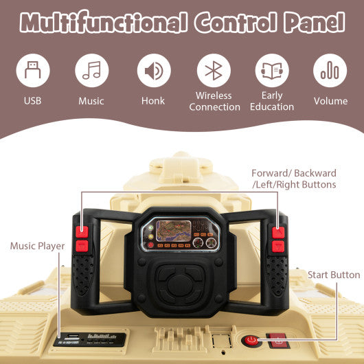 12V Electric Kids Ride On Tank with Rotatable Turret and 8 Missiles for Kids Aged 37-95 Months Old-Khaki