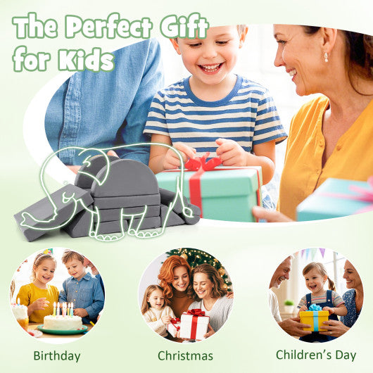 13 Pieces Convertible Modular Kids Play Couch for Nursery Playroom Bedroom-Gray