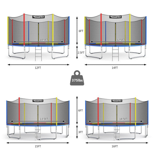 14 Feet Trampoline with Safety Enclosure Net and Ladder Outdoor for Kids Adults