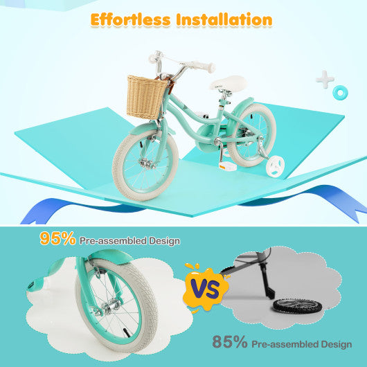 14-Inch Kids Bike with Training Wheels and Adjustable Handlebar Seat-Green