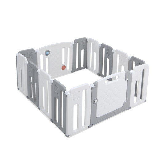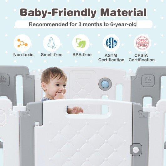 14 Panels Kids Safety Activity Play Center with Drawing Board-Gray