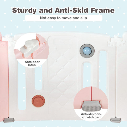 14 Panels Kids Safety Activity Play Center with Drawing Board-Pink