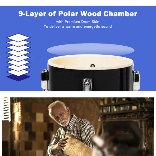 16 Inch 5 Pieces Complete Kids Junior Drum Set Children Beginner Kit-Black