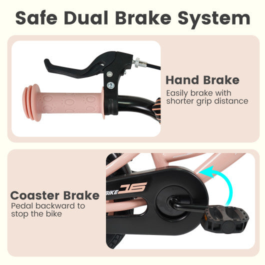 16 Inch Kids Bike Adjustable with Removable Training Wheels Pink for 3-8 Years Old