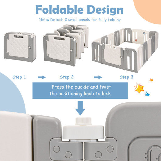 16 Panels Baby Safety Playpen with Drawing Board-Gray