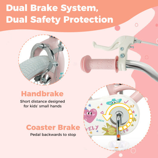 18 Inch Kids Bike Adjustable for 3-8 Years Old Children Pink - Stars & Moon