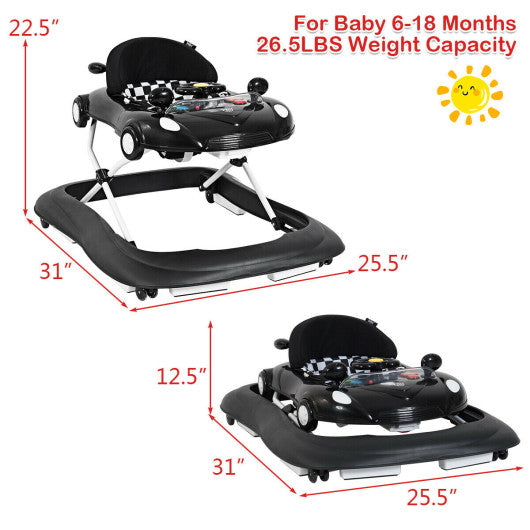 2-in-1 Foldable Baby Walker with Music Player and Lights-Black