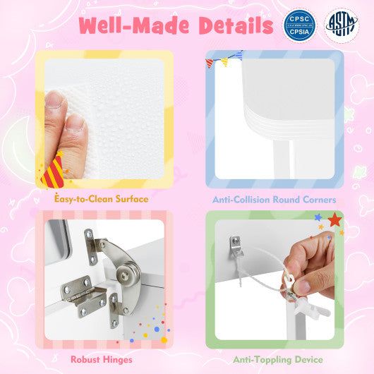 2-in-1 Kids Vanity Makeup Table and Chair Set with Flip Top Mirror-White