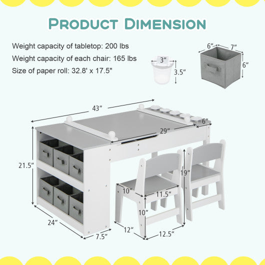 2-in-1 Kids Wooden Art Table and Art Easel Set with Chairs Storage Bins Paper Roll-Gray