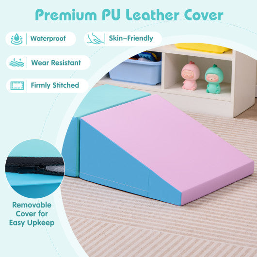 2-Piece Step and Slide Climber for Infants and Toddlers Baby Soft Play Set Foam Blocks-Blue