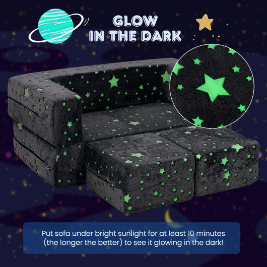 2 Seater Kids Play Couch with Removable and Machine Washable Flannel Cover-Gray