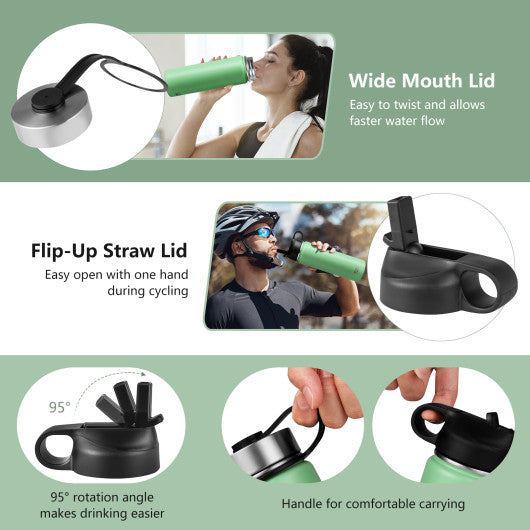 22 Oz Double-walled Insulated Stainless Steel Water Bottle with 2 Lids and Straw-Green