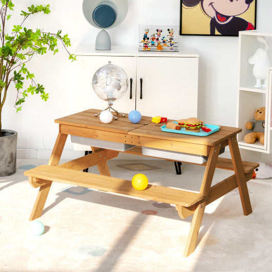 3-in-1 Kids Outdoor Picnic Water Sand Table with Umbrella Play Boxes-Yellow