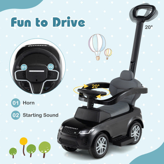 3 in 1 Push Car with Removable Handle and Guardrail for Kids 18-36 Months Old-Black