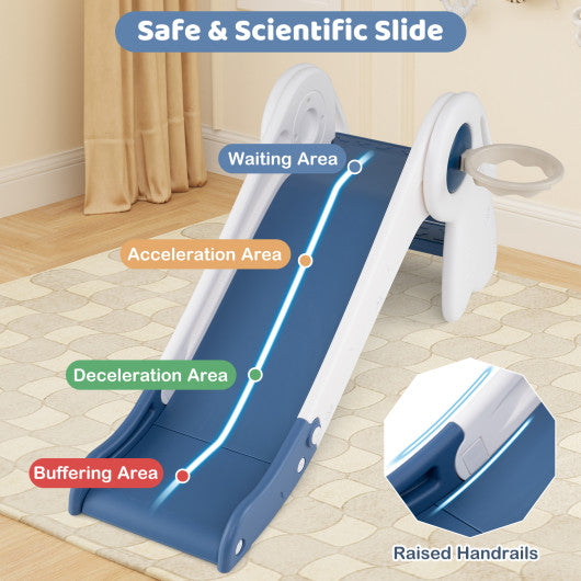 3 in 1 Toddler Slide Baby Slide Climber Playset with Basketball Hoop and Basketball-Blue