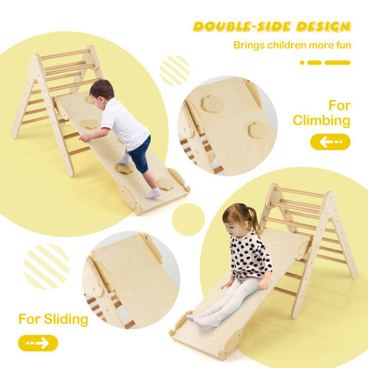 3-in-1 Wooden Climbing Triangle Set Triangle Climber with Ramp-Natural