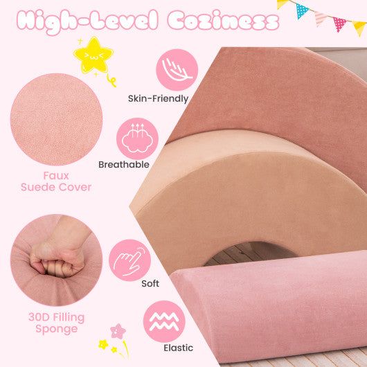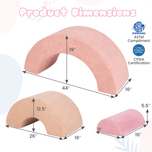 3 Piece Toddlers Climbing Toys Indoor Soft Play Equipment Playset-Pink