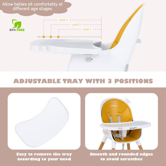 4-in-1 Convertible Baby High Chair Infant Feeding Chair with Adjustable Tray-Yellow