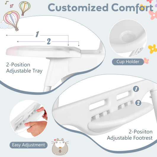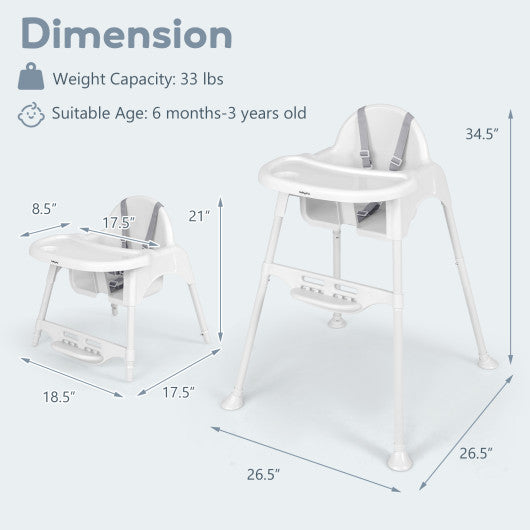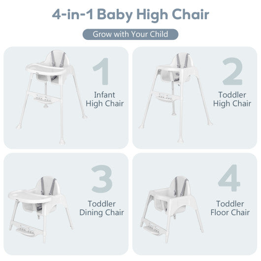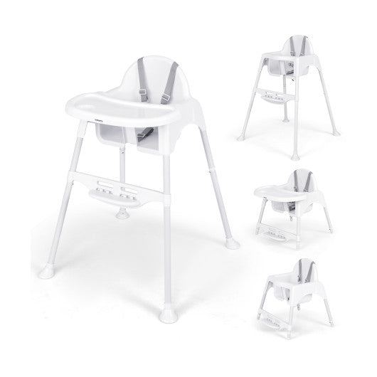 4 in 1 Convertible Kids Dining High Chair with Adjustable Removable Tray and Footrest-White