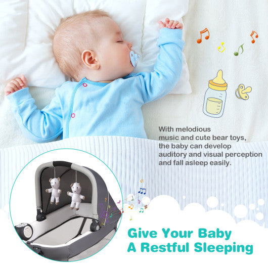 4-in-1 Convertible Portable Baby Play yard with Toys and Music Player-Blue