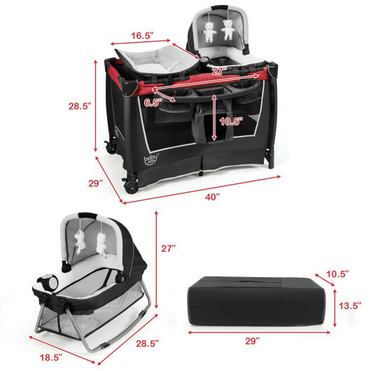 4-in-1 Convertible Portable Baby Play yard with Toys and Music Player-Red
