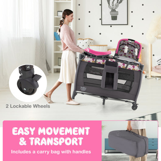 4-in-1 Convertible Portable Baby Playard Newborn Napper with Music and Toys-Pink