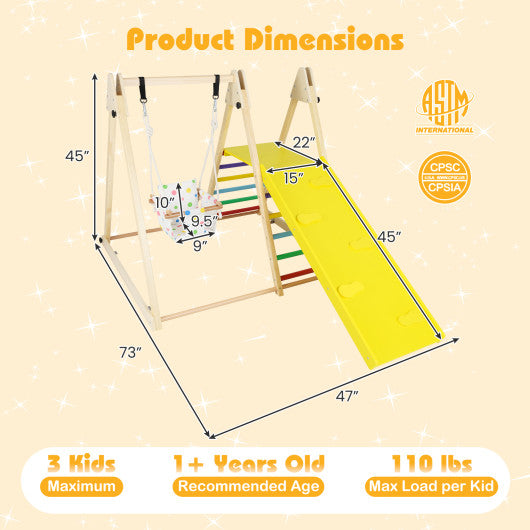 4-in-1 Indoor Jungle Gym with Baby Swing and Climbing Ramp-Multicolor
