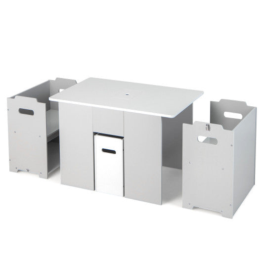 4-in-1 Kids Table and Chairs with Multiple Storage for Learning-Gray