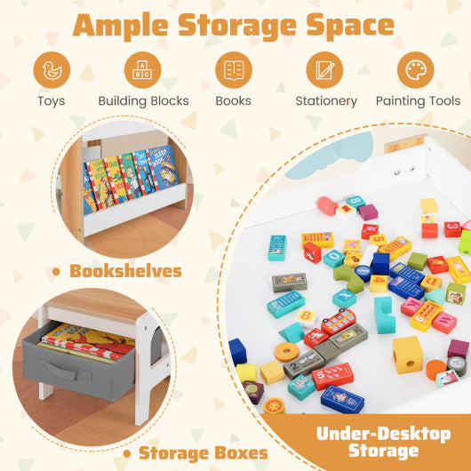 4 in 1 Kids Toddler Activity Table and Chairs Set with Reversible Tabletop-Natural