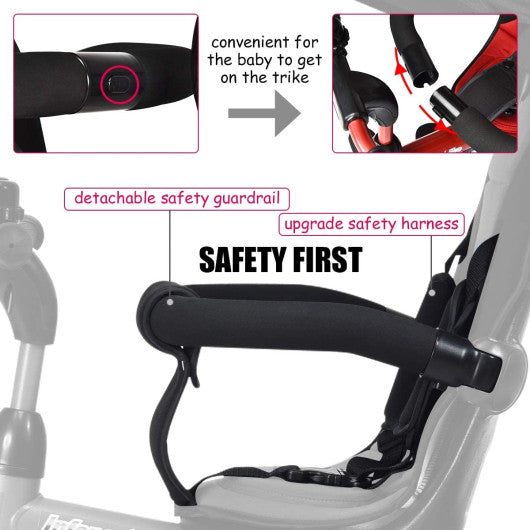 4-in-1 Kids Tricycle with Adjustable Push Handle-Red