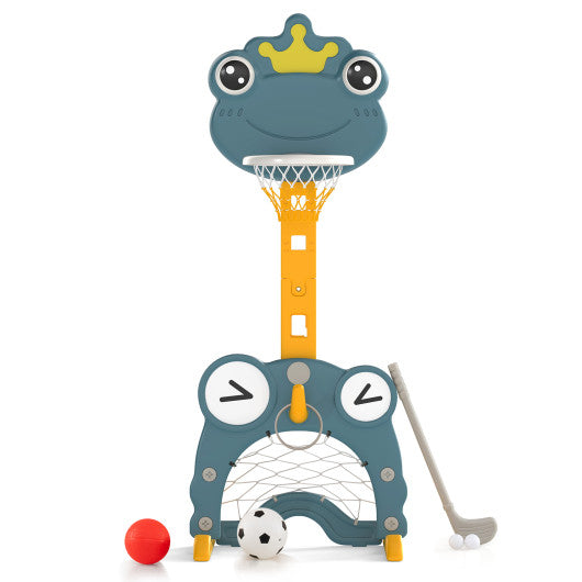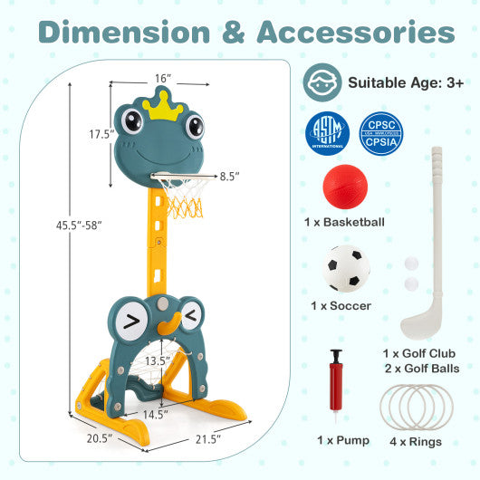 4-in-1 Toddler Basketball Hoop with Rim and Soccer Goal for 3+ Kids