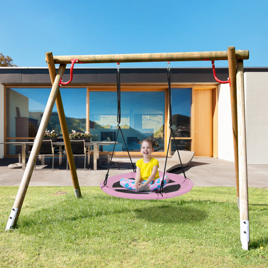 40 Inches Saucer Tree Swing Round with Adjustable Ropes and Carabiners-Pink