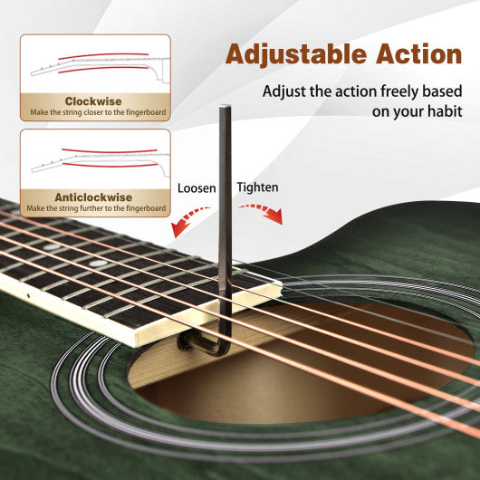 41 Inch Full Size Cutaway Acoustic Guitar Set for Beginner-Green