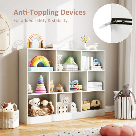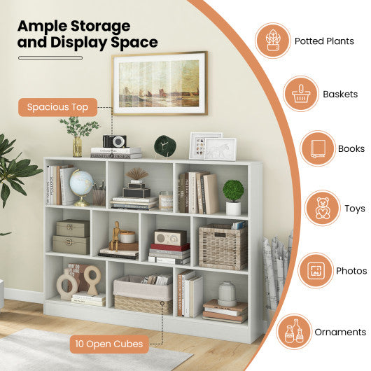 41 inches Wooden Toy Storage Organizer with 10 Cubes for Classroom Daycare Nursery Kindergarten-White