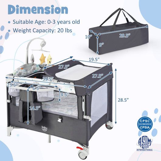 5-in-1 Portable Baby Beside Sleeper Bassinet Crib Playard with Diaper Changer-Gray