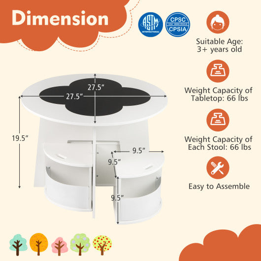 5 PCS Kids Table and Chair Set with Storage Stools for Activity-White