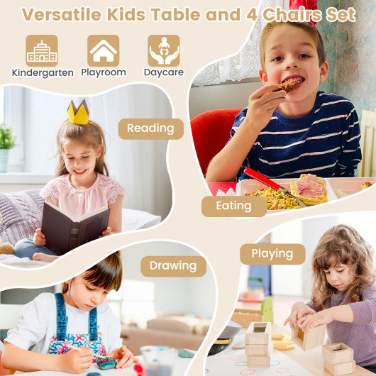 5-Piece Kids Toddler Wooden Curved Back Activity Table and Chair Set with Toy Bricks