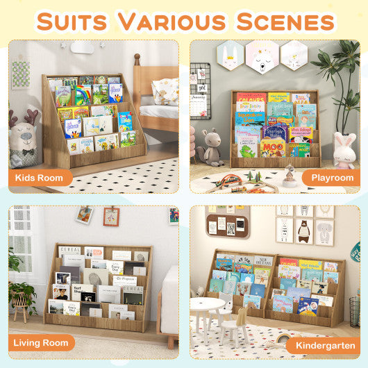 5-Tier Kids Bookshelf with Deep Compartments and Stable Baby Book Case-Natural