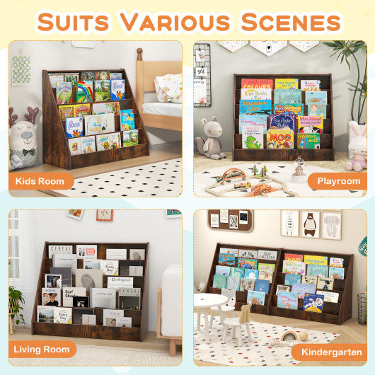 5-Tier Kids Bookshelf with Deep Compartments and Stable Baby Book Case-Rustic Brown