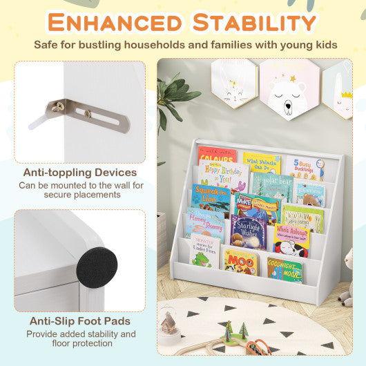 5-Tier Kids Bookshelf with Deep Compartments and Stable Baby Book Case-White