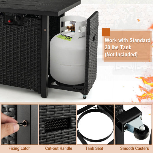 52 Inches Outdoor Wicker Gas Fire Pit Propane Fire Table with Cover-Black
