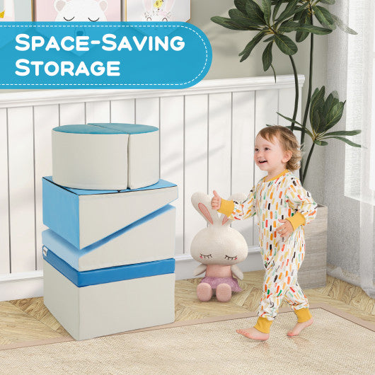 6-Piece Soft Play Set for Toddlers with Climbing Triangle and Ramp-Blue