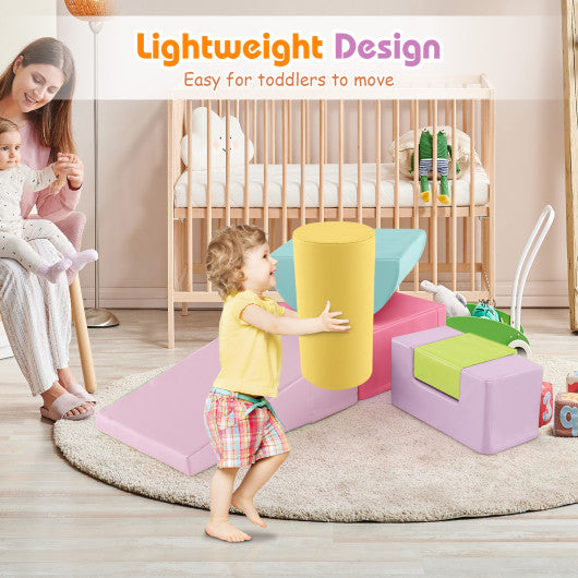 6 Pieces Foam Climbing Blocks Indoor Climb and Crawl Activity Playset with Rectangles-Macaron Multicolor