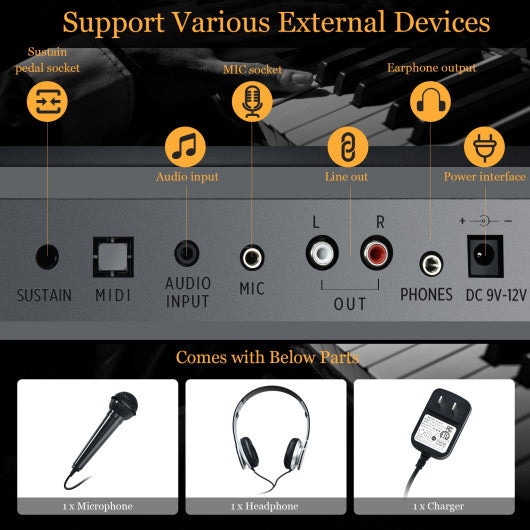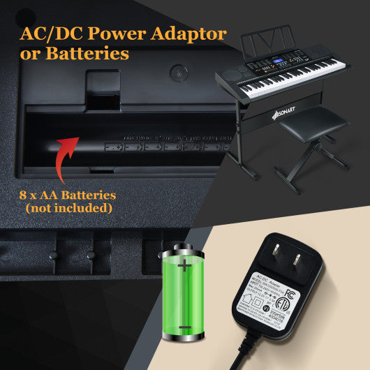 61-Key Electronic Keyboard Piano Set with Full Size Lighted Keys