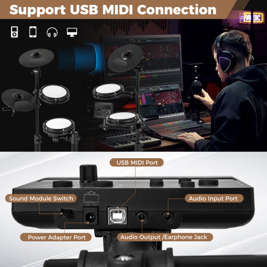 Electric Drum Set Foldable Drum Kit with 10 Demos and USB MIDI and 2 Drumsticks