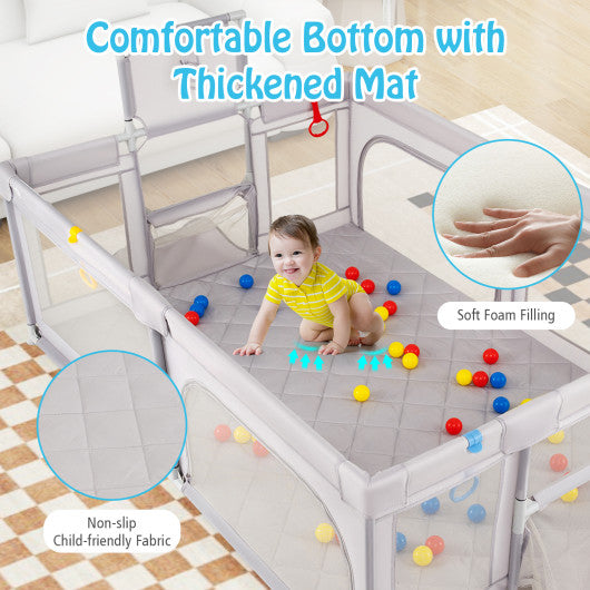 Extra Large Playpen with Basketball Hoop for Babies and Toddlers-Light Gray